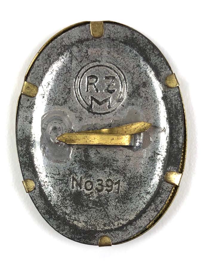 PHYSICAL DESCRIPTION: This DAF Visor Cap Badge is in nice condition showing some light wear. Both fastening prongs are present. Badge is RZM No391 marked to reverse.