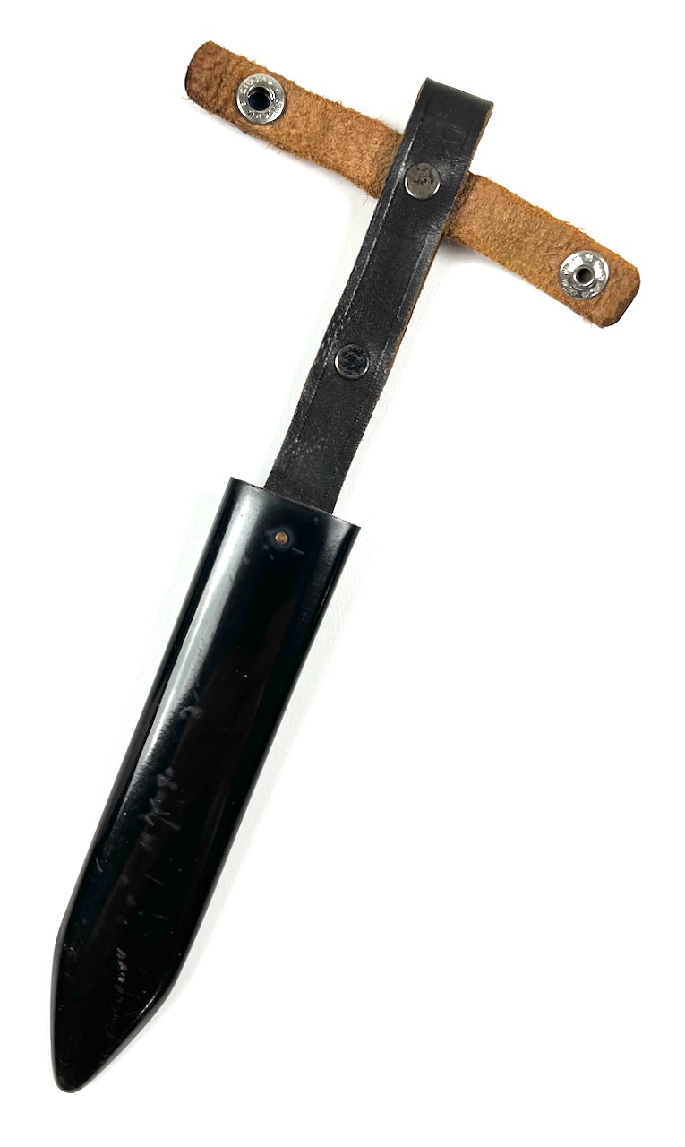 PHYSICAL DESCRIPTION: This WW2 U.S. Navy MK2 Camillus Fighting Knife is in real nice condition. Blade is unsharpened. Crossguard is marked : U.S.N. MARK 2 CAMILLUS, N.Y. . Leather handle is real nice with a tiny crack at crossguard. Scabbard is real nice with no damage. Closure strap is nice and snap functions great.