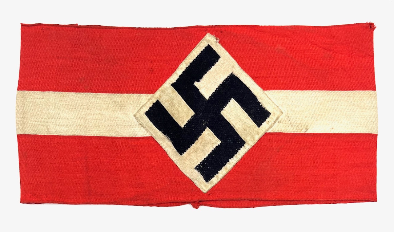 PHYSICAL DESCRIPTION: This Hitler Youth Armband is in fair condition showing some light wear and soiling. Armband shows evidence of once being sewn to a uniform.