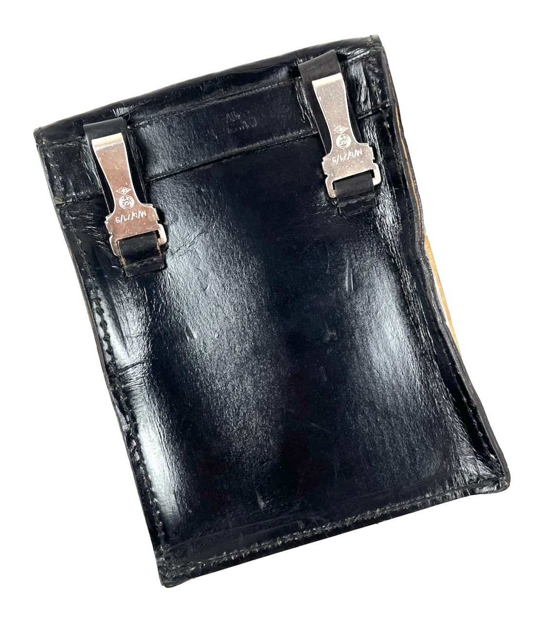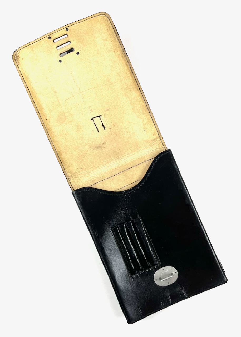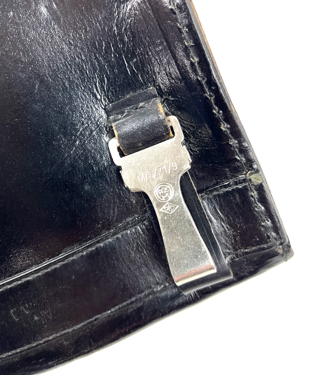 PHYSICAL DESCRIPTION: This German RZM Marked Map Case is in real nice condition with no damage. All stitching is intact. Case is marked to both metal clips : M/5/71/9 RZM in circle OLC in diamond. There is also an embossed stamp to leather between both clips. Very hard to make out but it appears to be another RZM with some letters and numbers. Case measures 6 3/4 inches by 9 inches. Very nice solid case with no issues.