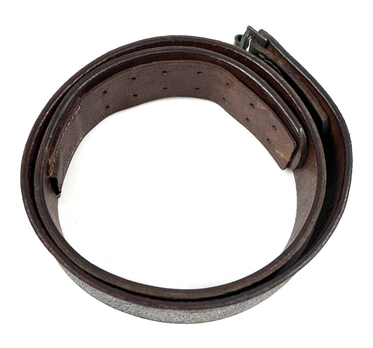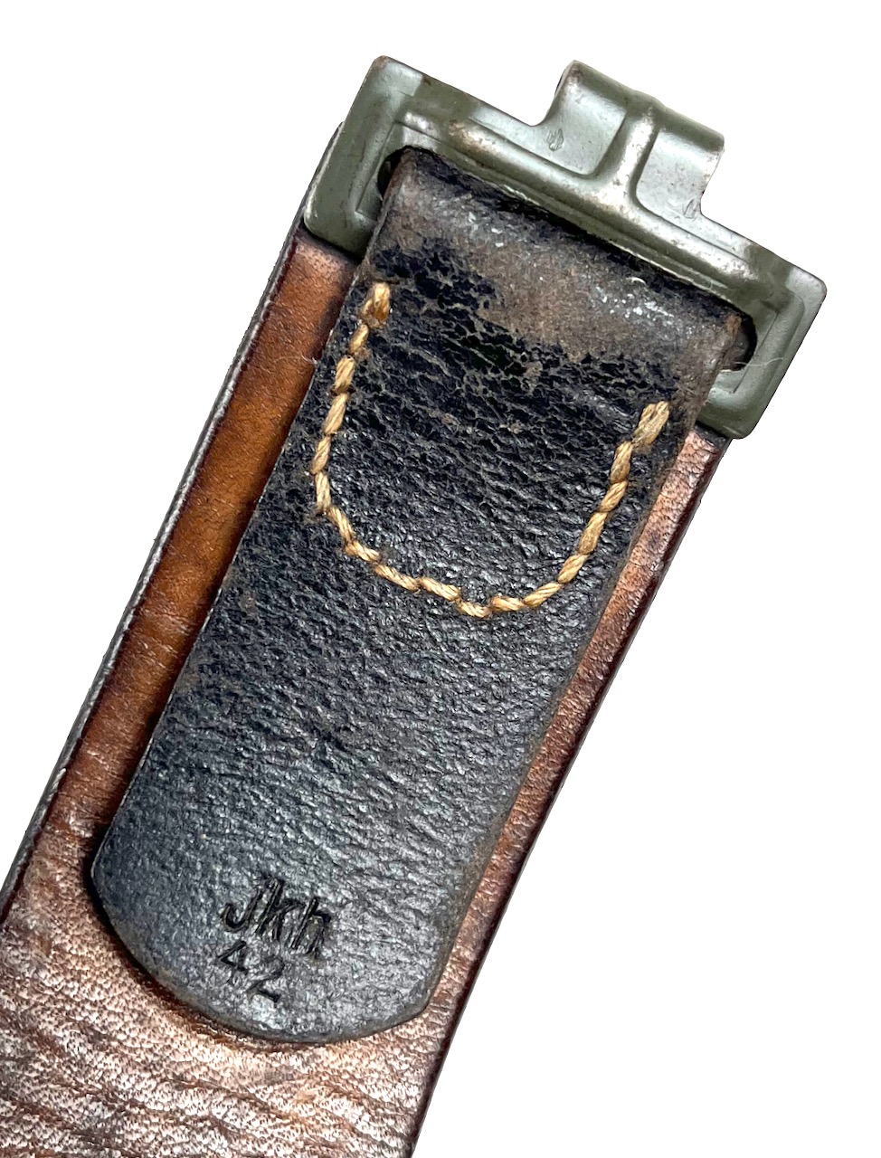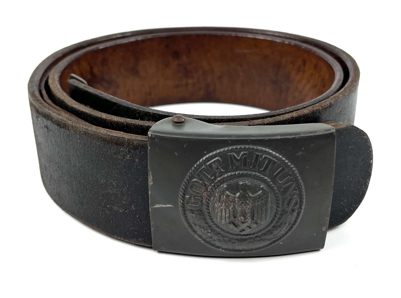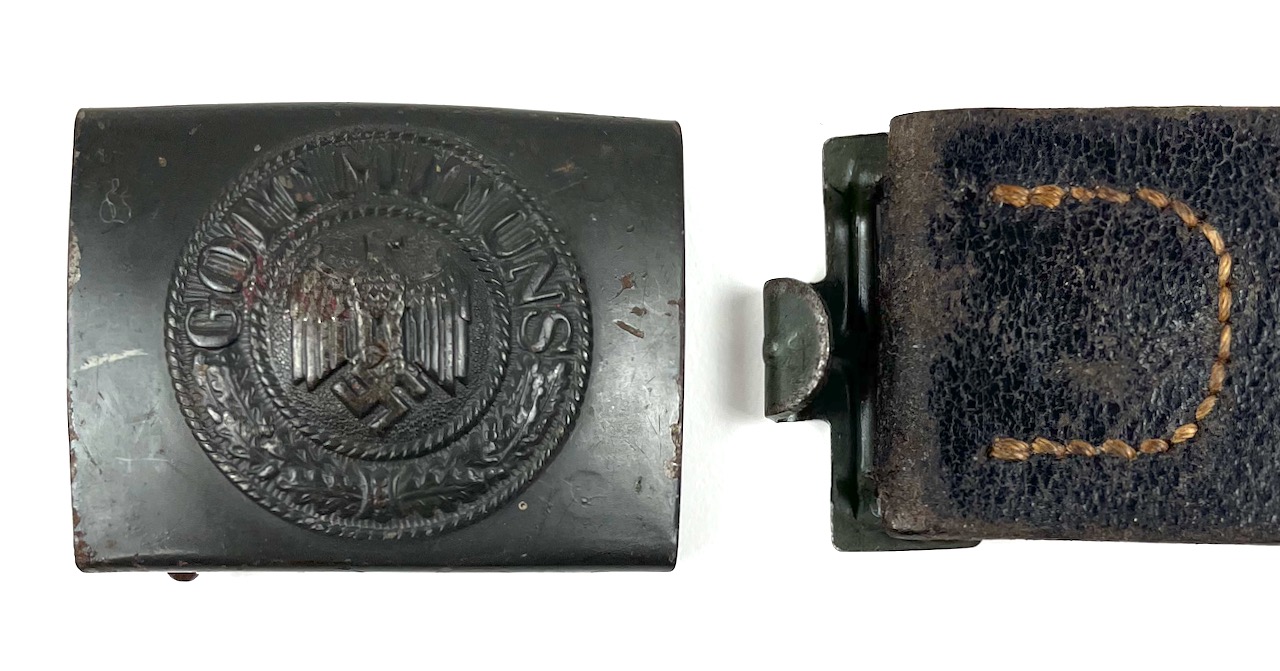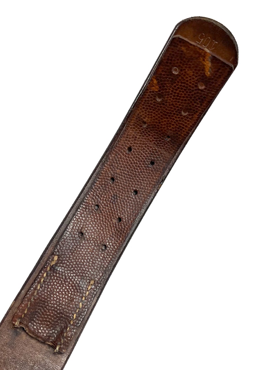 PHYSICAL DESCRIPTION: This WW2 Kriegsmarine EM/NCO's Belt & Buckle are in real nice condition. Buckle is nice showing some light wear. Buckle is marked : N & H L for the firm of Noelle & Huck of Ludenscheid. Belt is nice and supple with no damage showing some light wear. All stitching is intact. Belt is stamped to interior with an Eagle "M". Belt is also dated and maker marked : jkh 42 with a size stamp of 105. Nice solid original hard to find set.